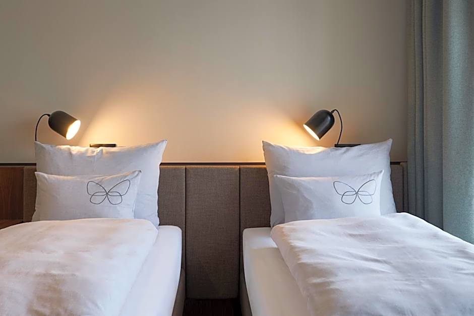 This twin room features a seating area, cork flooring, Raindance shower, Full HD Smart-TV.